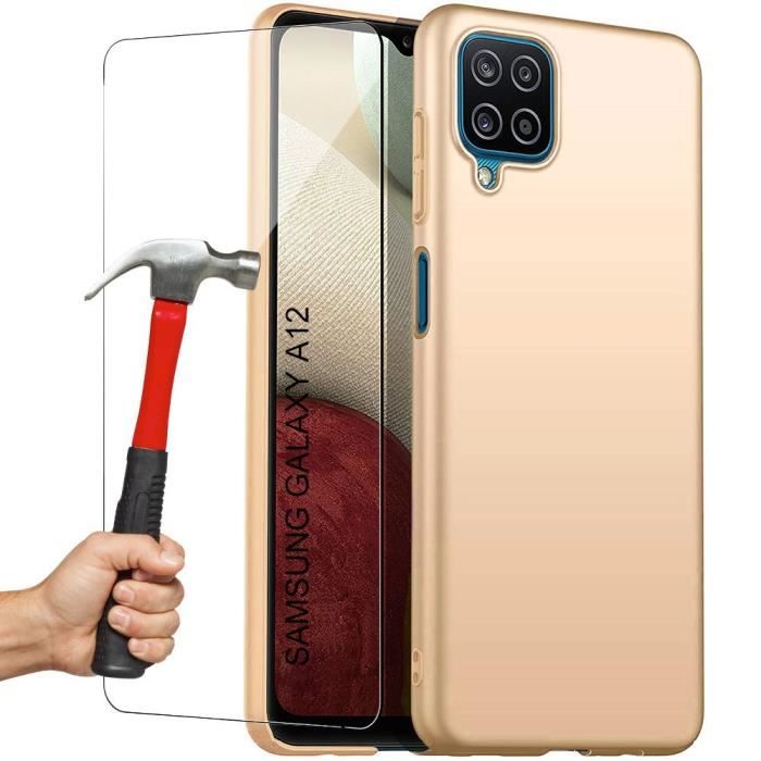 Ochranný kryt - Booling - pro Samsung A12 - Měkký - Zlatý - Sada 2 tvrzených skel