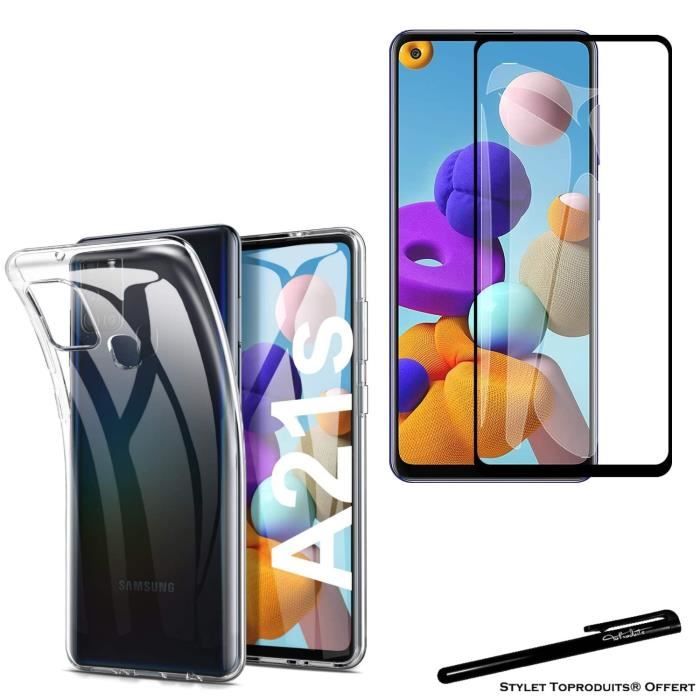 Coque de protection et verre trempé - Toproduits® - Samsung Galaxy A21S - Noir - Souple - Résistant aux rayures