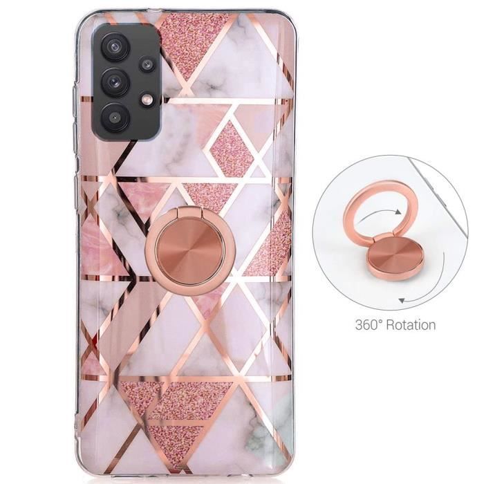Coque de Protection - Booling - pour Samsung Galaxy A52/A52s - Silicone - Marbre Rose - Support Anneau