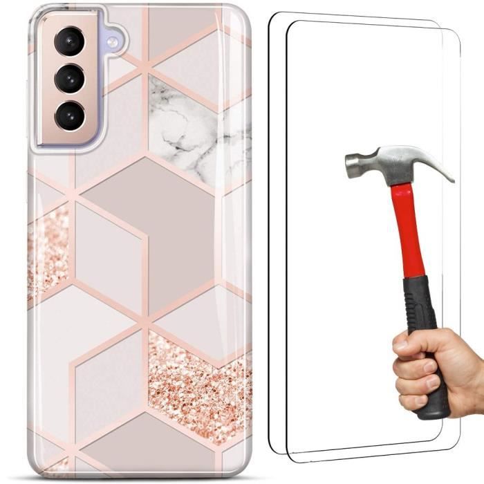 Pouzdro + 2 tvrzená skla pro Samsung Galaxy S21, Tenké elegantní pouzdro s růžovým mramorovým vzorem, Nárazuvzdorné