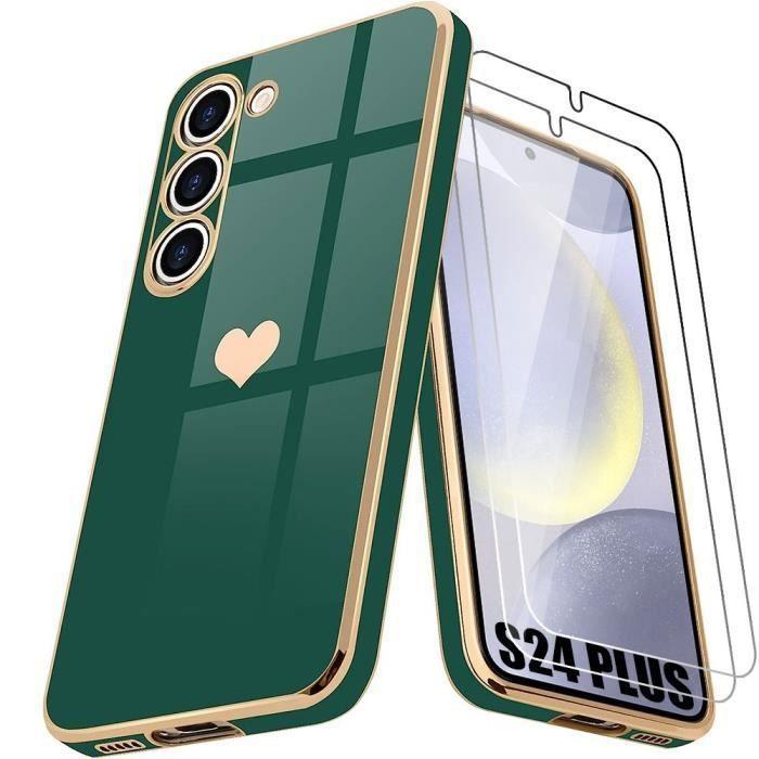 Coque de protection - PROSHOP - pour Samsung Galaxy S24 Plus - avec 2 verres Trempés - Motif Cœur- Vert Nuit