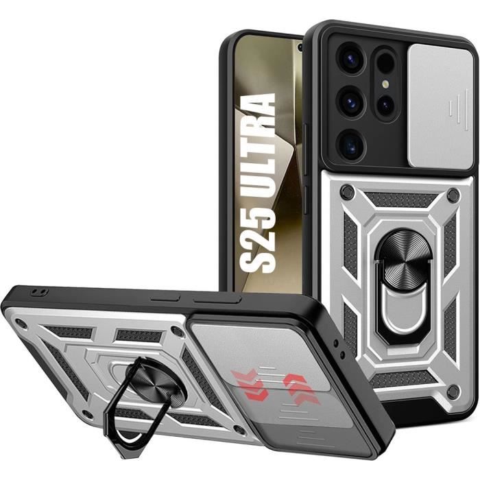 Coque pour Samsung Galaxy S25 Ultra, Protection Rigide Antichoc avec Support Arrière et Protection Caméra - Argenté