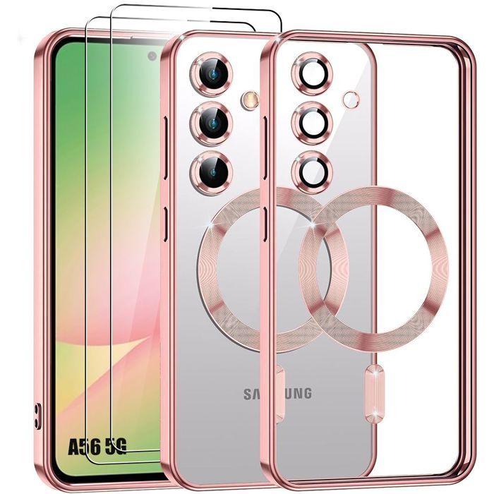 Coque de protection - BOOLING - pour Samsung Galaxy A56 5G - Rose - Protection caméra - avec 2 Verres Trempé