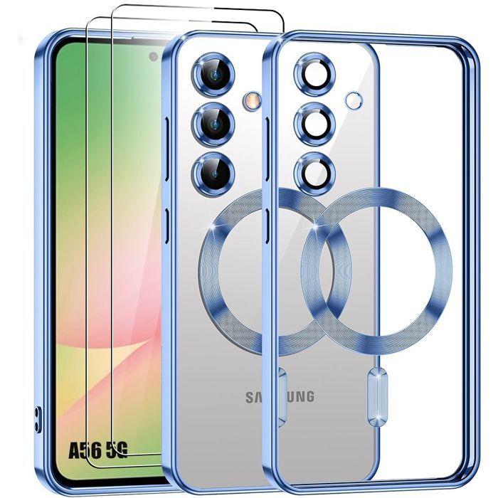 Coque pour Samsung Galaxy A56 5G - BOOLING - avec Anneau Magnétique Protection Caméra - Bleu - 2 Verres Trempés