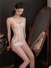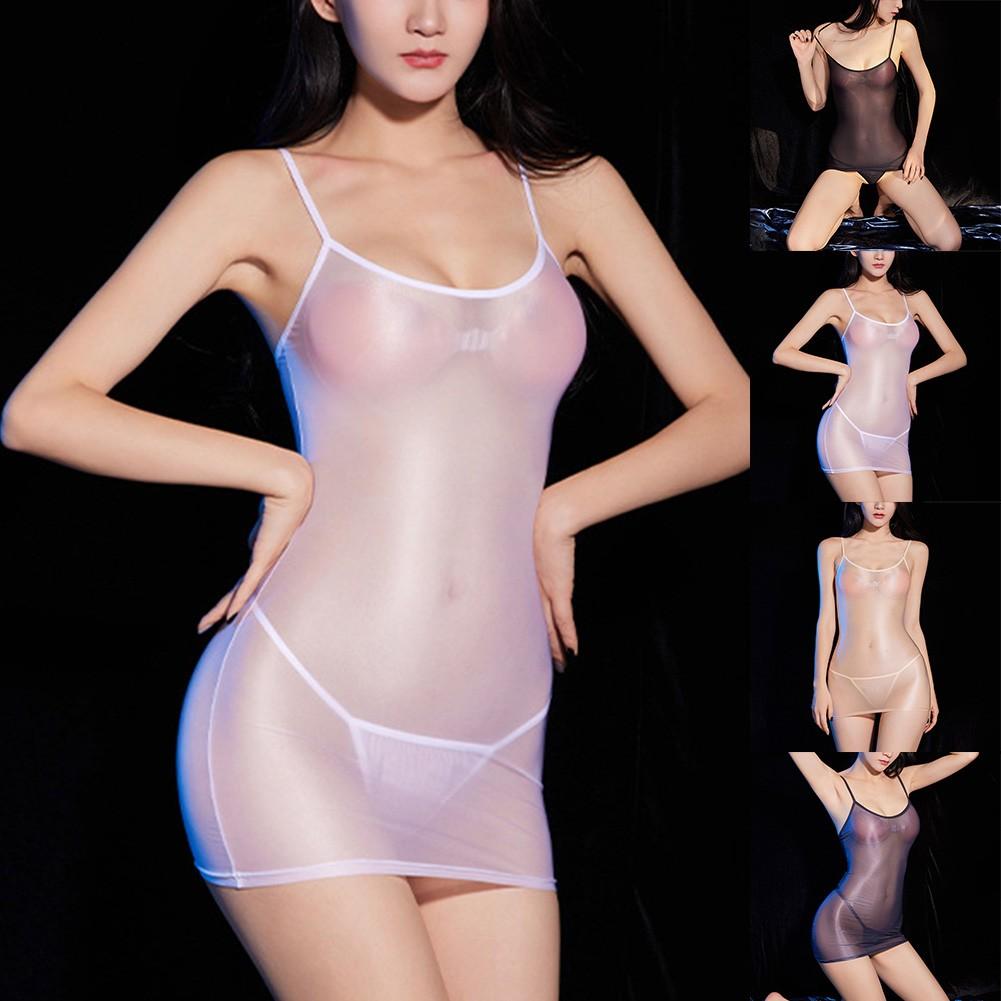 Sexy Nightgown Sheer Shiny Silky Nightwear Transparent Backless