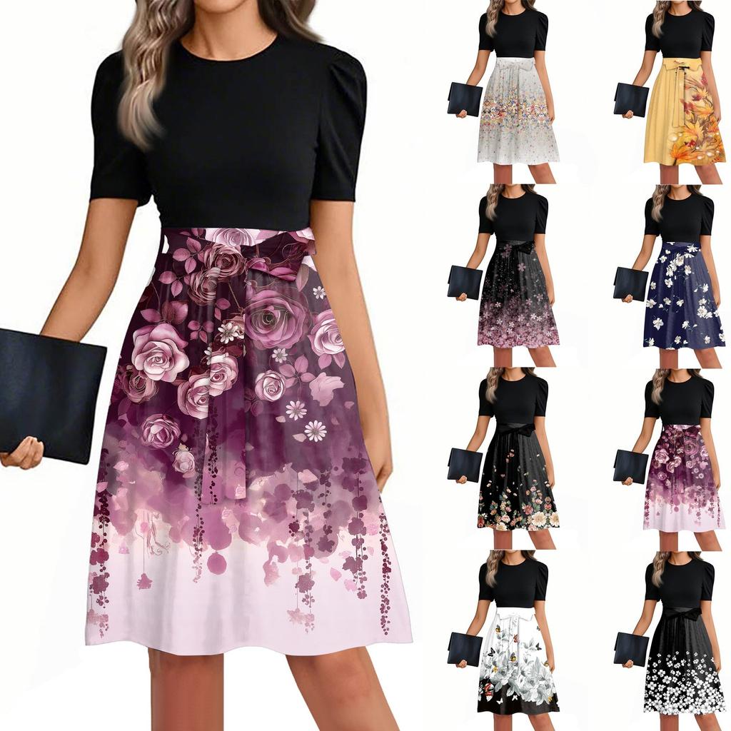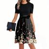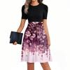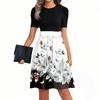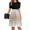 Dámské módní ležérní šaty s krátkým rukávem, kulatým výstřihem a potiskem patchworku