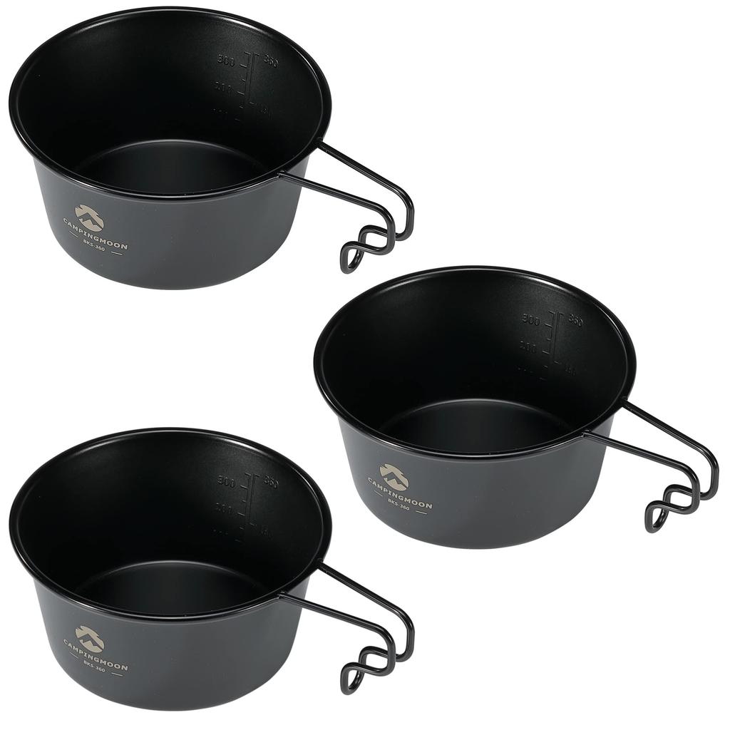 CAMPING MOON Camping Cup Stainless Steel Sierra Cup Black Deep Black Sierra 360ml 3 Piece Set BKS-360-3P