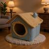 Foldable Pet House Semi Enclosed Cat House Winter Warmer Pet Bed House for Small Dogs Cats Puppy Kitten Shelter Cave