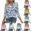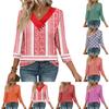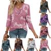 Womens 3/4 Sleeve Daily Weekend V Neck Casual Printed Tshirts Loose Fit Pleated Tees Button Down Shirts
