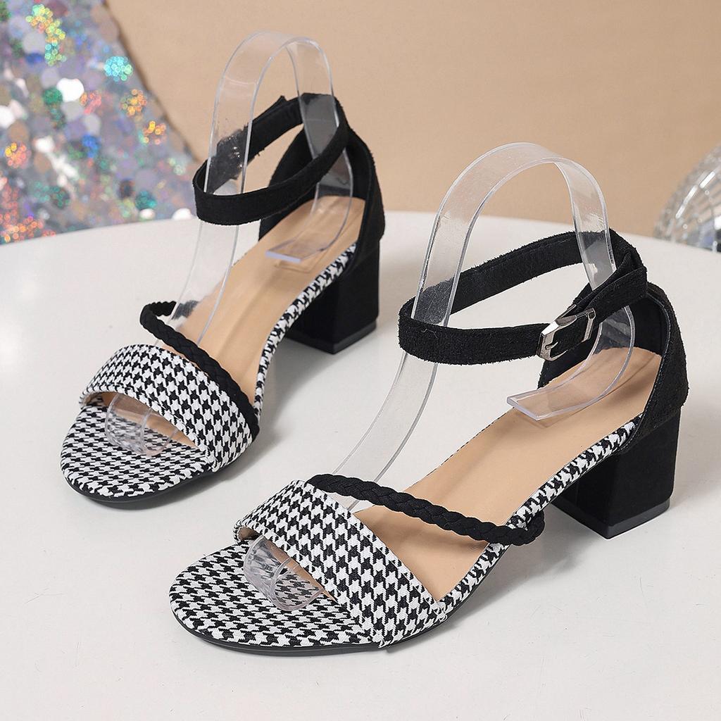 Summer New Women's Wide Fit Round Toe Block Heel Sandals - Single Strap Buckle, Cushioned Memory Foam & Non-Slip Rubber Sole