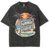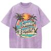 Coconut Tree Landscape Print Washed Denim Women's T-Shirt Pink Loose Extra Large Sleeve Casual Trend Street Top