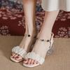 Women's Korean Style Crystal Heel Slingback Sandals - Lucky Clover Buckle Slides with Chunky Platform, Versatile Dress Shoes for Skirt Outfits