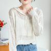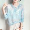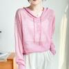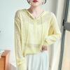 Nový letní lněný pletený svetr s kapucí s bambusovým žebrováním a jednobarevnou ležérní základní vrstvou
