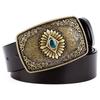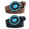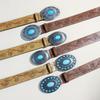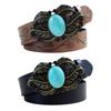 Bohemian Court Style Retro Etnický Imitace Tyrkysu Černý Ozdobný Pás Vzor Růže Ražený Široký Pás Dámský