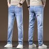 Slim Fit Straight Leg Jeans Men's Summer Thin Denim Casual Long Trousers Trendy Youth Fashion Versatile Classic Blue Pants