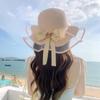 2024 Spring/Summer New Sun Hat with Ribbon Knot Decoration for Adult Straw Hat Sunscreen Beach Hat Elegant