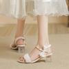 Yuexinwang leather flat for Huizhou women's shoes heels open-toed sandals women's summer new French high-heeled sandals women's