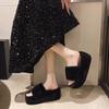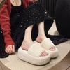 Small man thick bottom height increase 8cm fluffy slippers women 2024 autumn and winter wear Internet celebrity versatile muffin plush cotton mop