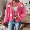 Dámský podzimní a zimní kardigan háčkovaný květinový patchwork pletený svetr s dlouhým rukávem