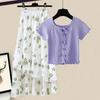 Women's Summer Fresh Ageing Set Waisted Floral Top + Half-body Skirt Two-piece Set