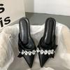 Baotou half slippers women's rhinestone bow wear 2025 new fairy wind pointed head shallow mouth flat-soled muller shoes