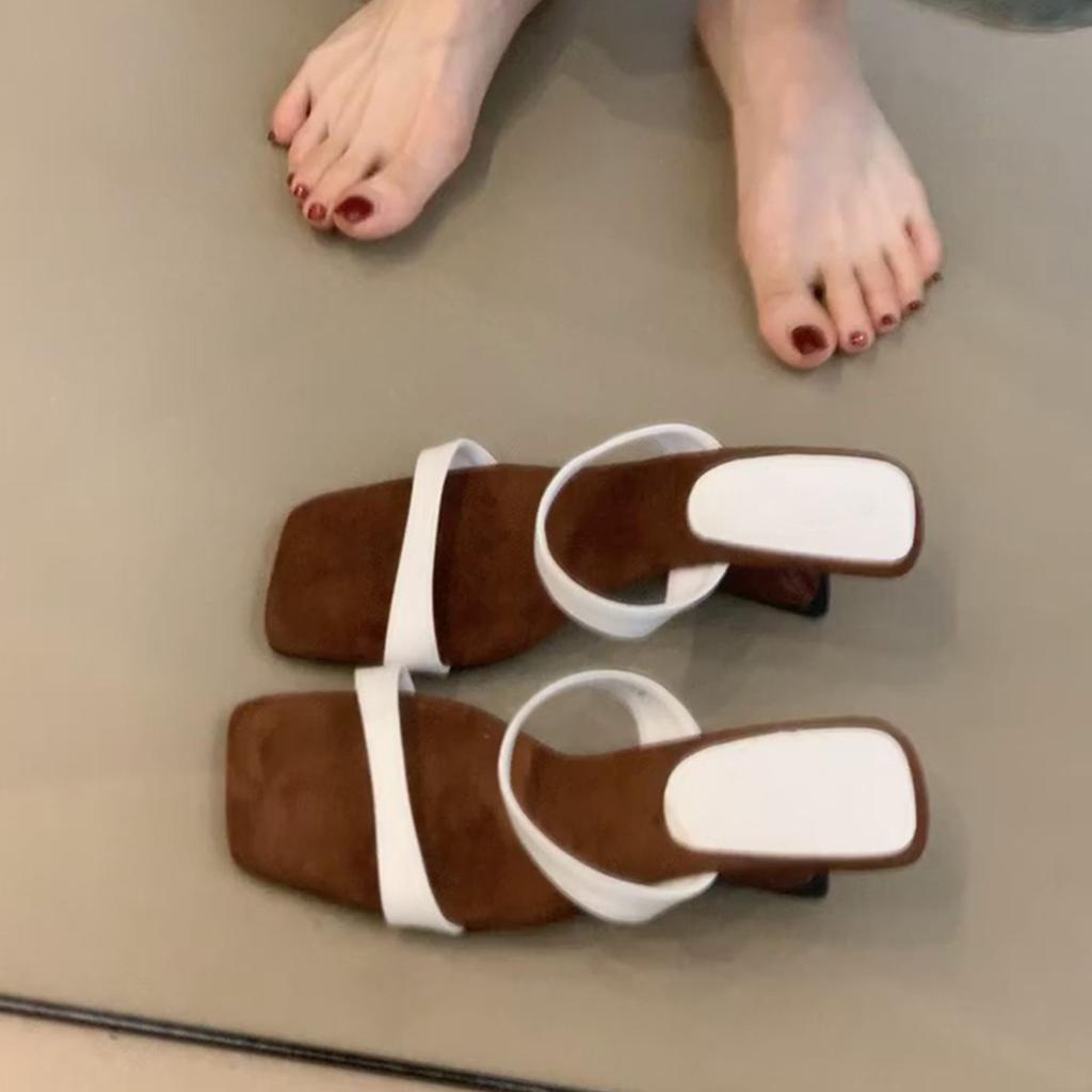 Wedge heel one-word slippers women's summer wear 2025 new beautiful high heels with skirt high-end silver cool slippers