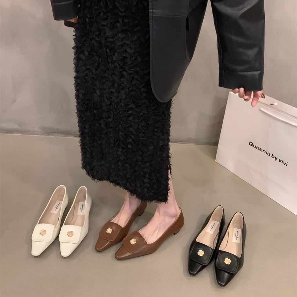 French Xiaoxiangfeng temperament small single shoes women's shoes 2025 new spring and autumn low-heeled pointed black commuter shoes