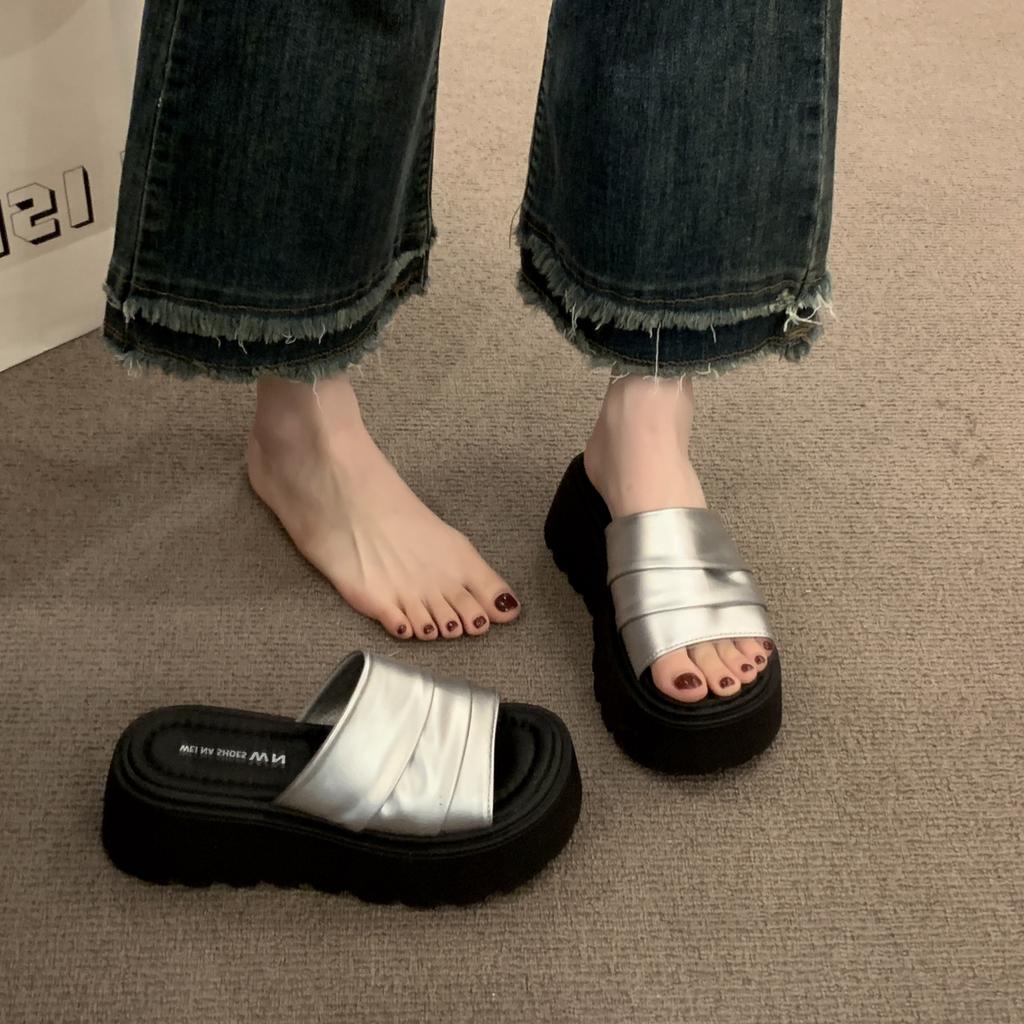 Sandals women's small man shows height 2025 new super fire beautiful sandals silver slippers seaside beach women's skirt