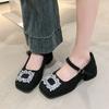 Rhinestone square head thick heel single shoes women's shoes 2025 new autumn French fairy style temperament retro Mary Jane shoes