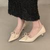 French gentle wind bow shallow mouth single shoes women's shoes 2025 new spring and autumn temperament pointed thin heel commuter shoes