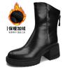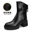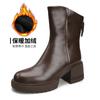 2024 Podzim/Zima Měkké Kožené Kozačky Dámské Britské Silný Podpatek Kulatá Špička Martensky Silný Zadní Zip Střední Podpatek Úzké Kozačky