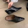 Evropský a americký styl klínový podpatek taška hlava poloviční pantofle dámské venkovní nošení 2025 jaro a léto měkká kůže malá čtvercová hlava ležérní vysoký he