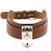 Přehnaný evropsko-americký styl PU kůže dvouvrstvý náhrdelník obojek se zámkem ve tvaru srdce