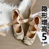 Small man inner height increase Mary Jane single shoes women's retro grandma shoes 33 small size with ribbon two wear ballet shoes women