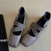 Cowhide version~ Square head pig nose ballet shoes women's cross strap shallow mouth flat bottom casual retro Mary Jane single shoes