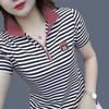 Letní Nové Tričko s krátkým rukávem na poloviční zip Dámský Top Všestranný Límec Volný Velká Velikost Středního věku Matka POLO Tričko