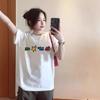 College Style Outfit with Large Size Rag-shoulder Color Block Short-sleeved Cotton T-shirt for Girls In Spring and Summer New Loose Round Neck Top