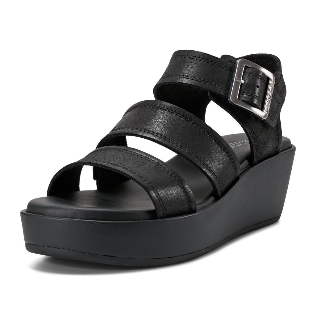Anara Platform M [Rockport] Three-Band Sandals, Sandals, Women's, Black, 24.0 cm,