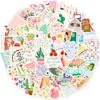 50 Self-Created Xiaoqing Graffiti Decorative Stickers Girl Pink Flower Plants Non-Repeating Waterproof Sticker Batch