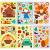 6 Packs Turkey Thanksgiving Puzzle Face Change Sticker Cartoon Turkey Puzzle Diy