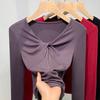 Red V-neck Bottoming Shirt, New Women's Autumn Fashion, Foreign Style, Fashionable Pleated Slim-fitting and Thin Long-sleeved Top