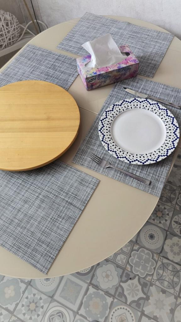 Skvělé podložky pod talíře 👍👍👍 Jsem velmi spokojená 🤘😘 Prostírání jsou vyrobena ze syntetického materiálu, nevsakují potraviny, snadno se myjí👌 vypadají stylově, jsou ideální!