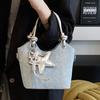 New Fashion Denim Backpacks Women Blue Pentagram Shoulder Bags Casual Handbags Female Embroidery Letter Crossbody Bags