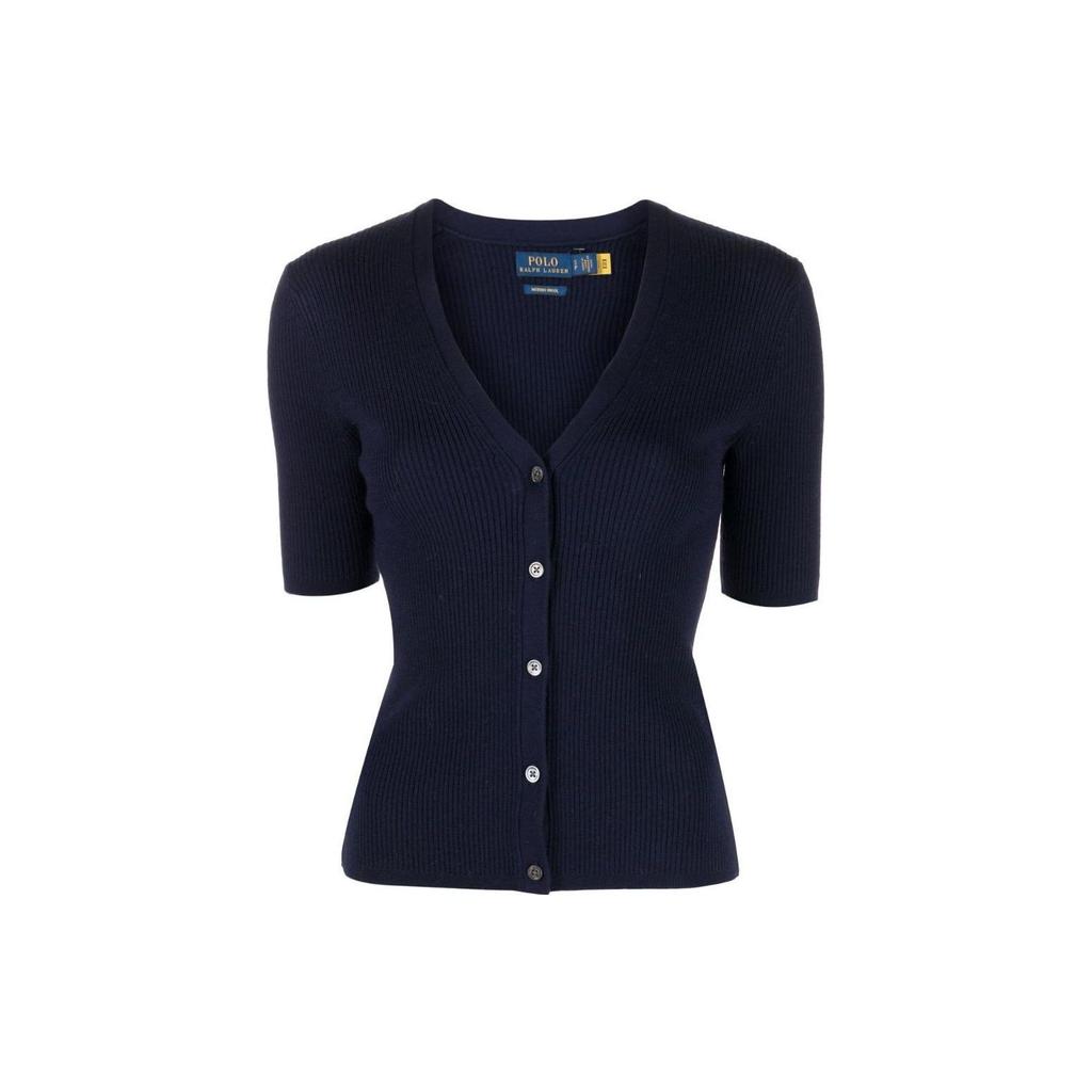 Polo Ralph Lauren Solid Color V-Neck Short Sleeve Wool Cardigan Women cardigans Blue 211872892-001