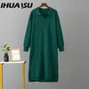 IHUASU Women's Autumn Winter Knitted Loose Large Solid Color Polo Collar Dresses with Lining