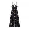 Printed Backless Sleeveless Vent Summer Dress Sexy V-neck High Waisted Sling Women's Dresses
