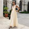 Dámské letní bavlněné dlouhé šaty bez rukávů, sexy výstřih do V, boho maxi šaty, volný styl, dlouhé šaty, oblečení