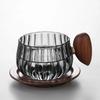 Skleněný hrnek na kávu s vysokým obsahem bóru s pruhy, žáruvzdorným povrchem, s dřevěnou rukojetí, ledovým americkým latte hrnkem, snídaňovým mléčným čajem