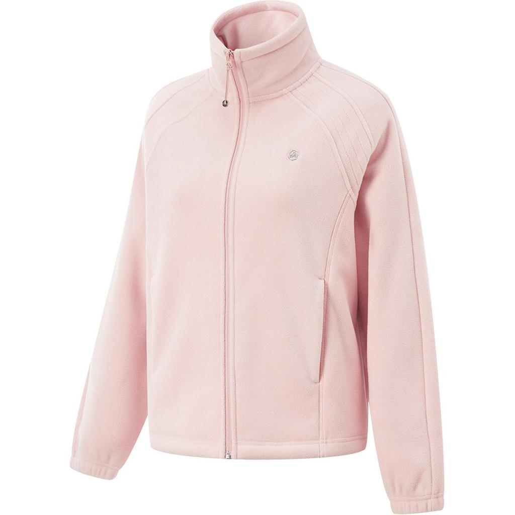 Li-Ning Fitness Series Infrared Warm Anti-Static Stand Collar Casual Loose Fleece Shoulder Dopamine Sweatshirt Women sweatshirt Light-Pink AFDU934-5