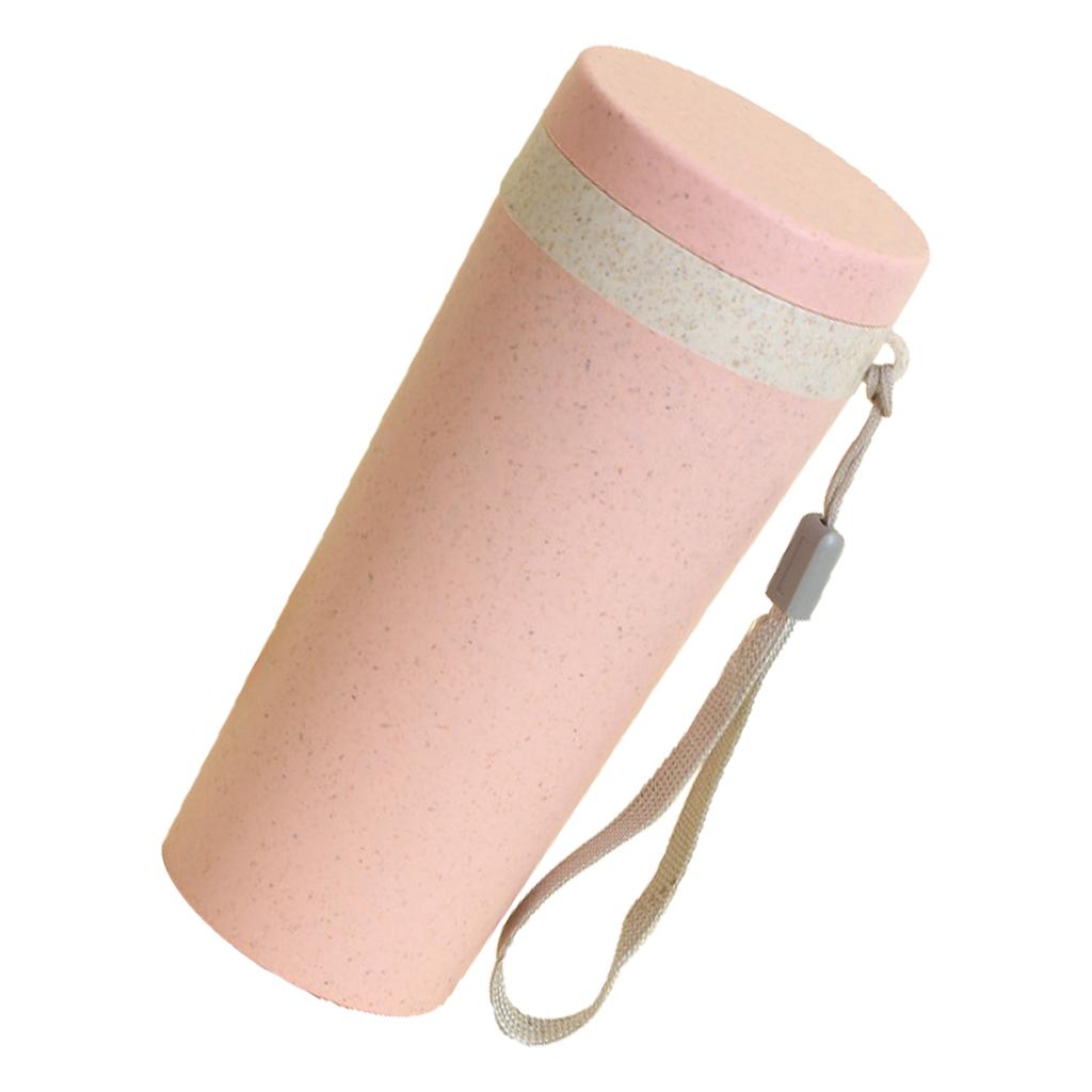Hrnek ze pšeničné slámy Dvouvrstvý hrnek na vodu pro domov, školu, kempování, piknik, cestování, kancelář, růžový